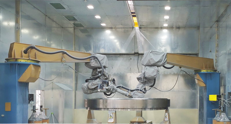 我公司為客戶提供了風(fēng)電行業(yè)軸承機器人自動噴涂生產(chǎn)線,成功為用戶提高了質(zhì)量,改善了操作者安全等困擾多年的瓶頸問題。